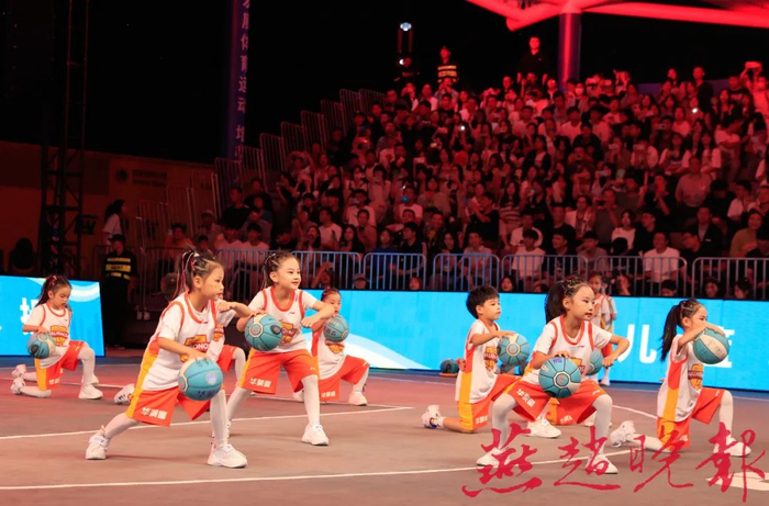 开幕式前,高铁片区中央绿色体育公园风雨篮球场能容纳938人的看台爆满,人们早早来到现场,热切等待激情四射的比赛开场。开幕式上,常山战鼓气壮山河,小球员们充满童真童趣的篮球表演,赢得掌声不断。