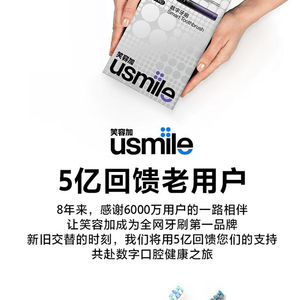 斥资5亿原价回收,是对老用户的诚意回馈,也是usmile笑容加引领牙刷行业数字化升级的起点和缩影。随着usmile笑容加“数字牙刷三年战略计划”的开展,未来将有更多的用户感受数字牙刷为口腔健康带来的改变,有效提升全球用户的口腔健康水平。