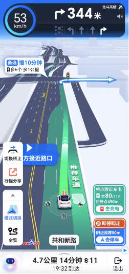 此外,针对连续路口、长实线路段等城市驾车常见难点,车道级导航也能够提供更加全局、超视距的路径规划和引导,全程为用户推荐变道更少、更顺的车道,提升驾驶安全和体验。