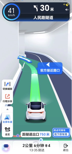 值得一提的是,本次车道级导航升级,还针对全国范围内的隧道导航场景实现了视觉渲染升级。通过创新结合北斗高精定位和道路空间感知计算,实时感知当前道路的上下层关系,判断用户所在空间层级,从而精确渲染出用户当前所在道路及隧道场景结构,实现场景级的3D立体渲染,弱化无关的道路及周边环境要素,一眼即所见,一眼即所得,达到沉浸式的导航引导效果,提供更加沉浸、直观的导航体验,减少其在复杂隧道场景的决策成本。