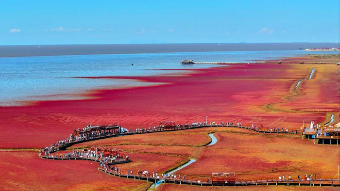 辽宁盘锦:红海滩绚丽缤纷 迎来最佳观赏季
