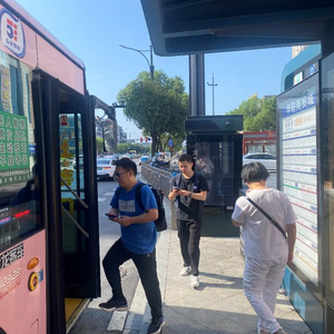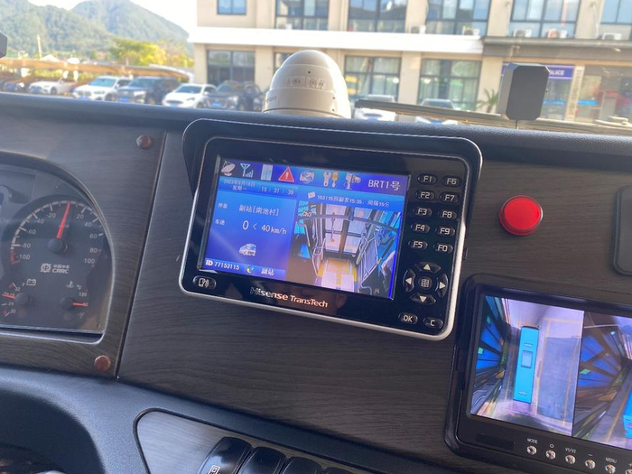 要实现如此精确的控制和指挥,让公交车听懂命令,“大脑”一定是不可或缺的,对于绍兴公交来说,“大脑”则是海信车载机。据海信网络科技公司软件实施工程师陈忍介绍,车载机位于驾驶室,呈现在驾驶员面前的是一块平板显示屏,当前,绍兴路上跑的近2300辆公交车,都安装有海信的车载机。“车载机既能传输数据、也能接收数据。”陈忍说,“例如工作人员可在后台查看车辆的行驶轨迹、车内监控画面、在站点停留了多久,都是靠的这台设备。再比如公交车进站后会自动播报,靠的也是车载机,前期我们为了获得每个站点的确切位置,在安装前带着车载机挨个站点打卡,确定经纬度的范围。”