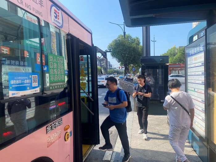 亚运会开幕在即,9月19日上午,记者在浙江省绍兴市柯桥区华联商贸城公交车站看到,前来乘车的市民和游客络绎不绝,途径这一站点的公交车有88路、803路、805路、808路、816路、863路等,它们有条不紊地进站、出站,候车乘客通过路边的电子站牌,可实时查看公交车的路线、还有几站到达、车上拥挤程度等情况,增加了良好的出行体验。