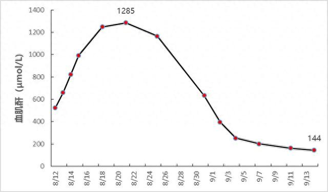 经中山医院急诊检查,小魏属急性肾损伤、肝功能衰竭、横纹肌溶解、肺部感染和心功能不全,病情严重,如不及时治疗将有生命危险。患者随即被收至肾内科,血肌酐继续升高至1285μmol/L(正常范围:44μmol/L-115μmol/L),并出现无尿。
