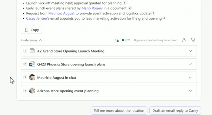 Office办公软件的AI功能也在今天官宣上市时间。Microsoft 365 Copilot将在今年11月1日起面向商业用户开放。经过大半年的开发后,这套体系在实现整个工作流程“AI化”方面又取得了进步。365 Copilot可以调用整个办公环境下的文件,来回应提问并撰写文档。当然,根据要求写邮件、总结会议纪要等基础AI功能自然不在话下。