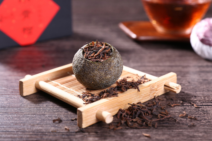用掀盖冲泡法,柑果的耐泡程度好,果皮的味道与普洱茶汤融合较好,而且容易操作。