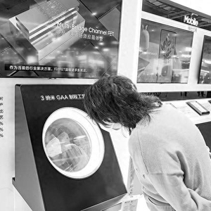 图片说明: 图片说明:2022年,三星在上海进博会展示3纳米制程工艺。(视觉中国)