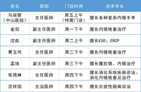 团队学历结构及职称结构不断提升、优化,初步形成消化道肿瘤早诊早治和消化内镜微创治疗等方面的特长,目前拥有中山医院周平红教授、马丽黎教授、5名主任医师、4名副主任医师、4名主治医师。