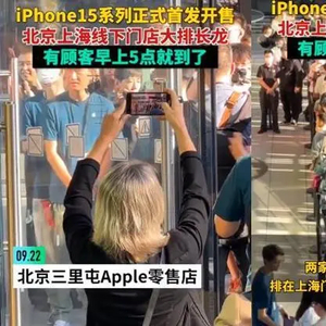 今天(22日),iPhone 15 系列产品正式发售,北京、上海、深圳各地门店早早队排长龙,场面堪称火爆……