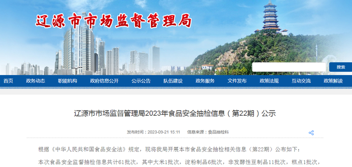 辽源市市场监督管理局2023年食品安全抽检信息(第22期)公示