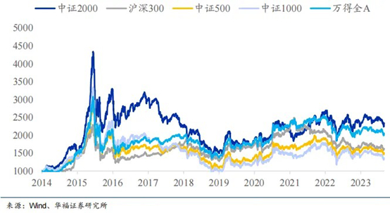 根据华福证券的统计,自2013年12月31日基日以来到2023年8月30日,中证2000指数的累计年化收益是9.6%,这个数字不仅高于同期的另外三个中证系宽基指数(沪深300中证500中证1000),甚至比万得全A还要高,这一点十分难得。
