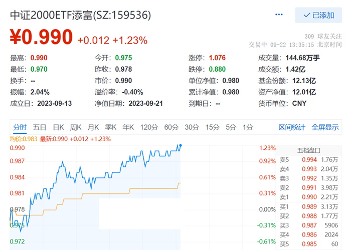 A股回暖,微盘股强势,微盘投资利器中证2000ETF添富(159536)现涨超1.2%,成交额超1.4亿元,再居同类第一!
