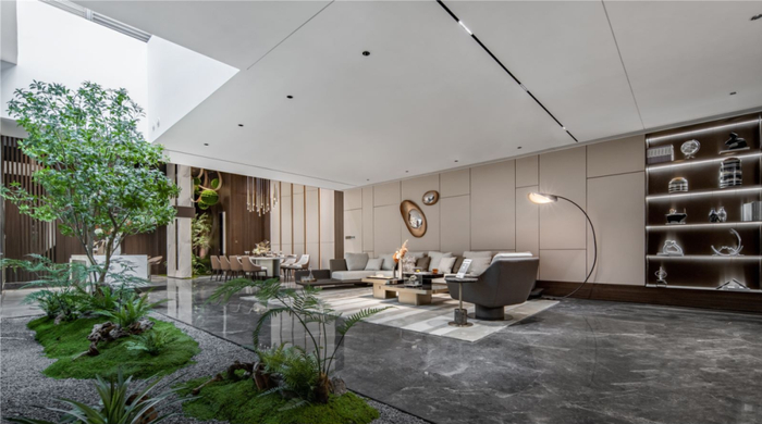 项目更是配备超270㎡的私人畅享空间,层高8.8m,奢华感拉满,空间打造也非常灵动,能按需打造为私享会客厅、工作室、健身房、私家影院等丰富场景; 负二楼更是实现了车库与室内空间一体化,私密性得到极大保障。