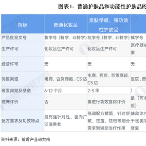普通护肤品和功能性护肤品(妆字号、械字号)的对比如下:
