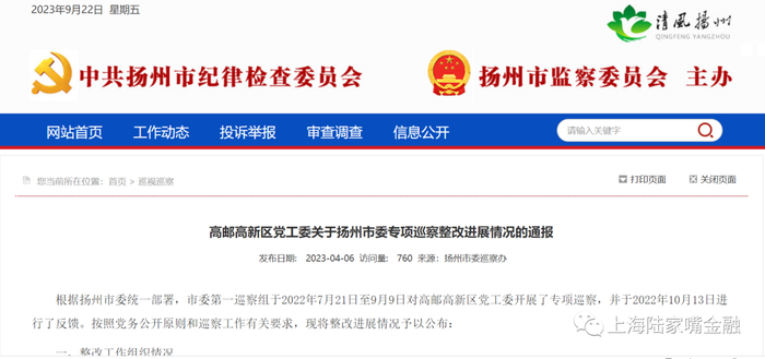 据中共扬州市广陵区委关于巡视整改进展情况的通报,关于“融资决策机制形同虚设。”问题的整改。已印发《融资管理办法》,明确融资工作流程及细节要求。已扩大直融比例,暂停非标产品融资,目前融资结构已全面优化,融资成本已大幅降低。建立专业的融资、债务管理系统,档案完整齐全,每笔融资合同皆由专业律师团队审核。目前全区定向融资已经全部清零。全面梳排全区综合融资成本超过5.5%的融资,将逐笔制定压降方案。