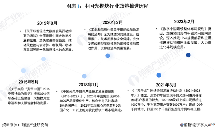 本文核心数据:中国光模块行业政策历程、中国光模块行业政策汇总及解读、中国各省市光模块行业政策汇总及解读