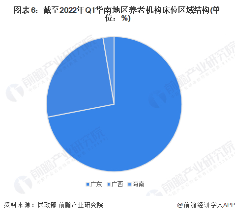 据民政部公布数据,截至2022年一季度,华南地区养老机构床位数量最多的地区是广东地区,共拥有24.6万张养老床位,占华南地区养老机构数的72%。其次是广西地区,拥有8.7万涨养老床位,占华南地区的25%。