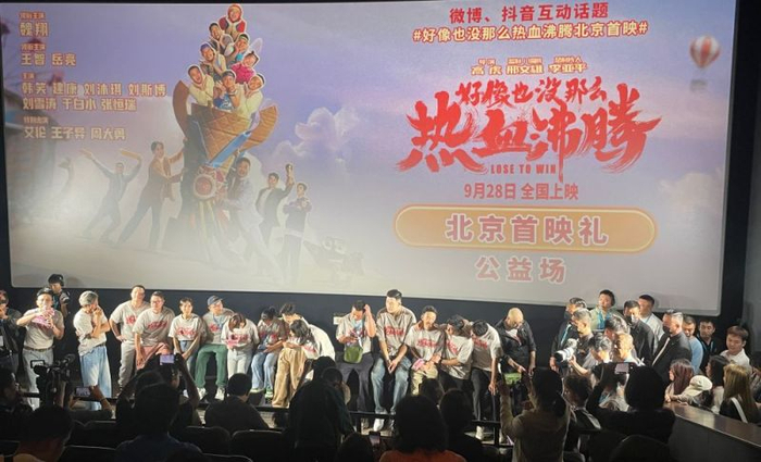 9月20日,中秋国庆唯一喜剧《好像也没那么热血沸腾》在北京举办首映活动,影片监制兼编剧邢文雄,导演高虎,领衔主演魏翔、王智、岳亮,主演韩笑、建康、刘沐琪、刘斯博、刘雪涛、于白水、张恒瑞,特别主演艾伦、王子异、周大勇等主创悉数亮相。首映礼现场,几位主创大谈拍摄电影的心得和趣闻,与现场观众热情互动。