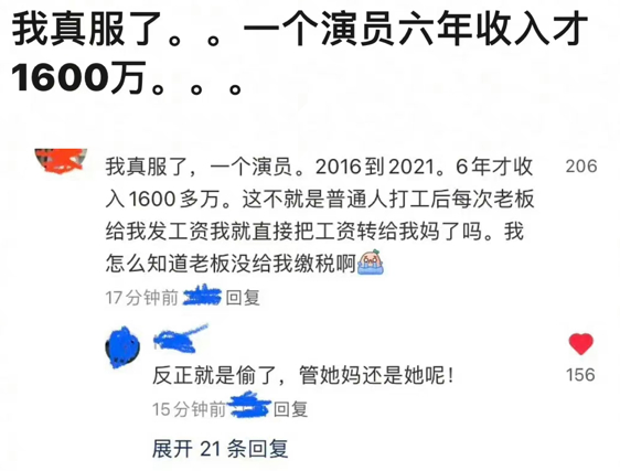 我真服了……一个演员6年收入才1600万,这不就是普通人打工后,每次老板给我发工资,我就直接把工资转给我妈了吗?