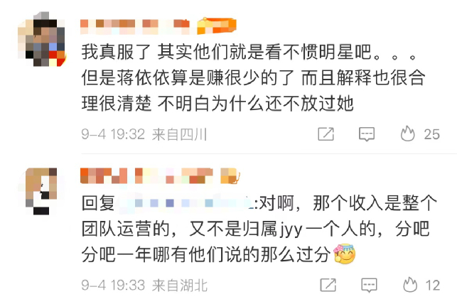 有人说,蒋依依算赚很少的了,收入也是整个团队运营的,分完了哪有赚那么多?