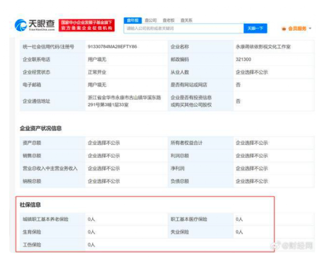 说这话的,不妨看看,蒋依依工作室相关信息显示,成立7年,0人参保。