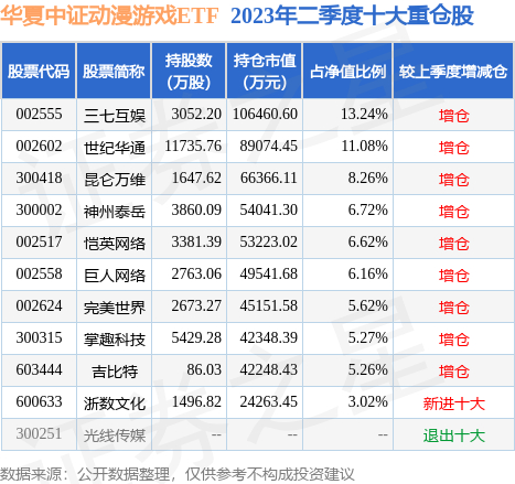 华夏中证动漫游戏ETF的前十大重仓股如下:
