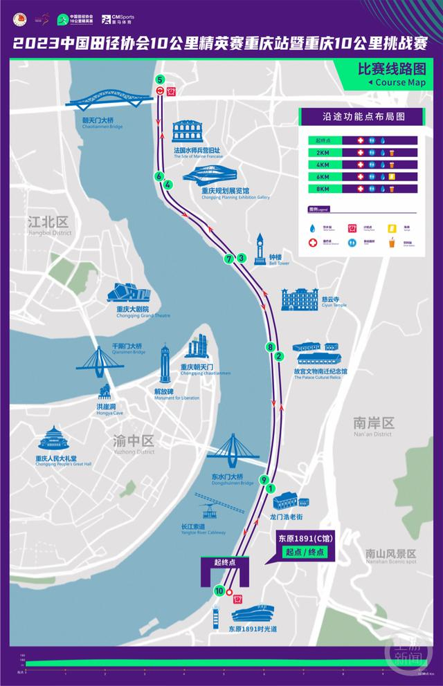 重庆又有了路跑新赛事!9月22日,2023中国田径协会10公里精英挑战赛暨重庆10公里挑战赛开启报名,比赛将于11月18日上午9点在南滨路鸣枪开跑。