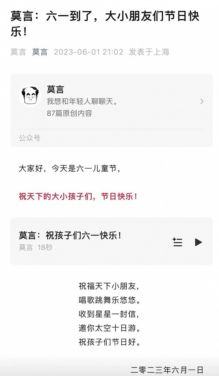 “莫言老师会真诚地和我们讨论年轻人迷茫的话题,会发语音祝大小朋友六一快乐,他一开始看不懂网络用语,后来却能把YYDS运用自如。”一位网友如此评论。在年轻人解构权威的同时,这些文学大家也在靠近年轻人。