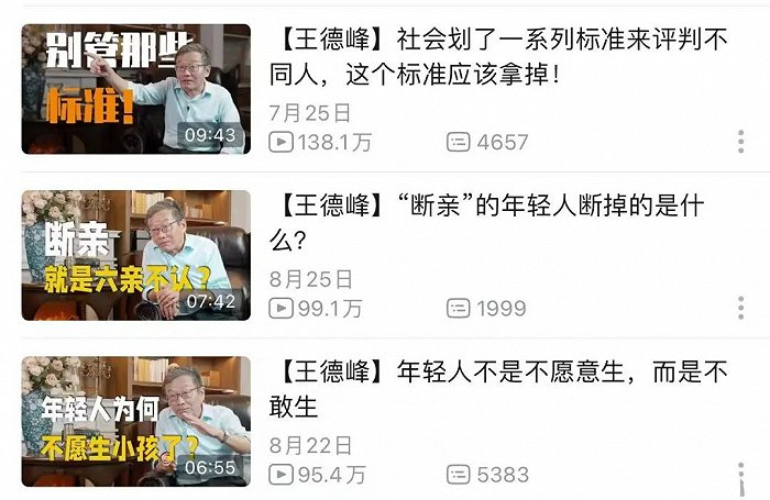 一个最明显的例子是“复旦王子”王德峰教授,这位复旦大学哲学学院教授、博士生导师今年下半年先后入驻了B站、小红书和抖音,全平台分发切片式短视频,内容涵盖“该信命吗?”“年轻人为何不想生小孩?”等话题,迅速收获百万粉丝。