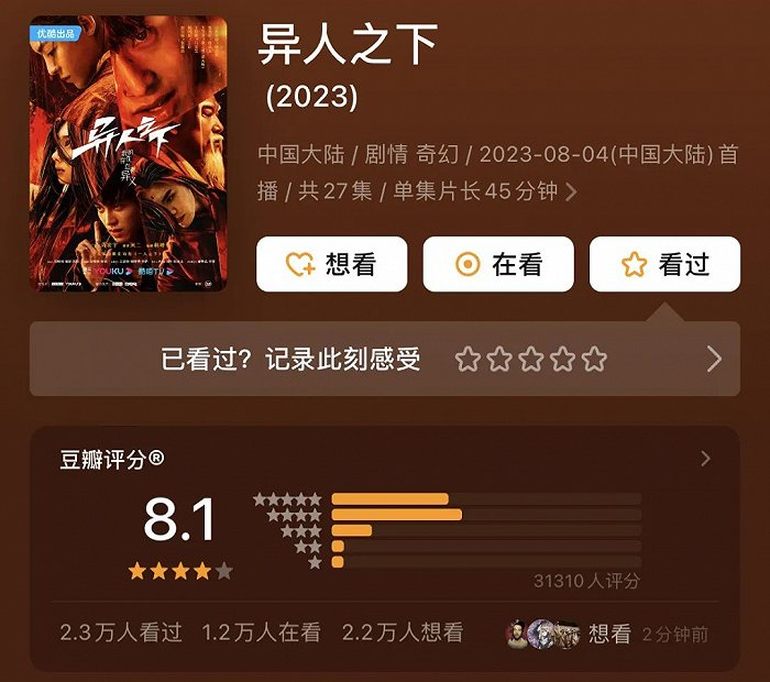 巧合的是,《超异能族》在国外爆红的同时,国内漫改剧《异人之下》反响不错,开分8.1。或许,《异人之下》的成功可以为之后的国漫漫改剧打一个样。