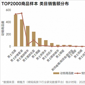 抖音男士护肤TOP2000商品样本类目销售额分布