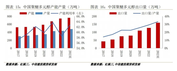 从丙烯-环氧丙烷-聚醚产业链利润来看,2018年以后环氧丙烷利润多处压缩状态,聚醚生产已处于产能过剩状态,开工调节较为迅速,近五年来利润相对稳定,且预计至2025年投产速度放缓,利润压缩空间不大。