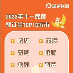 途家民宿数据显示,截至9月21日,十一热门城市民宿提前预订量同比2019年同期翻番,平均间夜价格达到565元,同比2019年增长两成。成都、重庆、青岛稳居热门预订城市,延边增速亮眼,首次登榜热门预订城市前十。