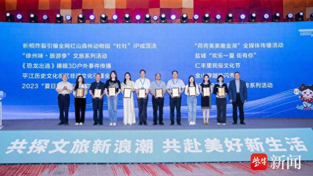 长相炸裂引爆全网红山森林动物园“杜杜”IP成顶流、“徐州味•旅游季”文旅系列活动、《恐龙出逃》裸眼3D户外事件传播、平江历史文化街区非遗文化引爆全网、2023“夏日惠玩南通等你”文旅消费推广季等10个项目获评“文旅消费传播热事件”。