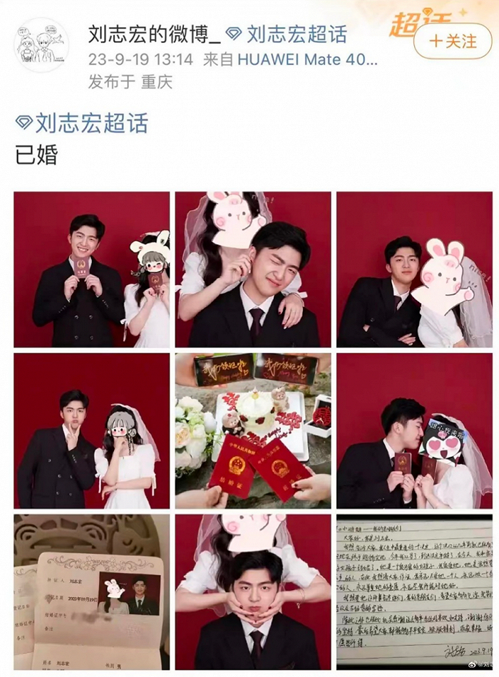 退圈多年的前时代峰峻练习生刘志宏忽然跑出来公布婚讯。尽管不少人第一时间囫囵看成了刘畊宏,但由于故事太戏剧、主角太投入,还是引来不少讨论。