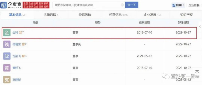值得关注的是,金科曾为大客户保障房公司董事。企查查显示,保障房公司历史人员中,董事金科任职日期为2018年7月10日,直到2022年10月27日才卸任(见图一)。结合金科在中法水务任职期间为2021年7月至2024年7月,也就意味着金科在中法水务担任董事长期间,还同时担任公司大客户保障房公司的董事。