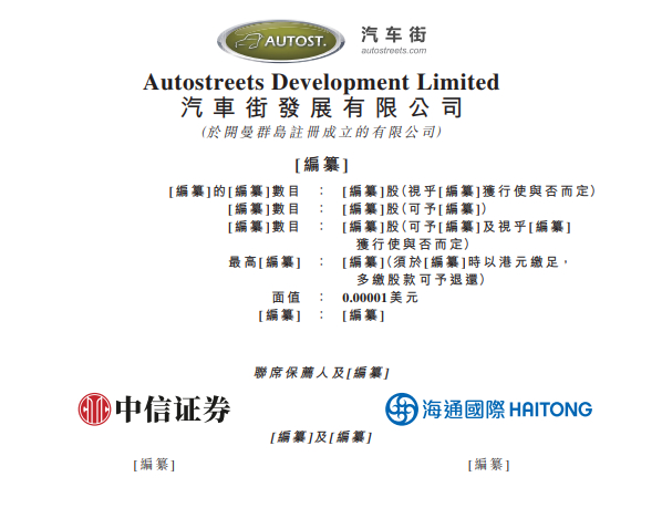 汽车街发展有限公司 Autostreets Development Limited(简称"汽车街”),于2023年6月30日在港交所递交招股书,拟在香港主板IPO上市。不过根据披露,该公司此前于2023年7月12日已接收备案了。