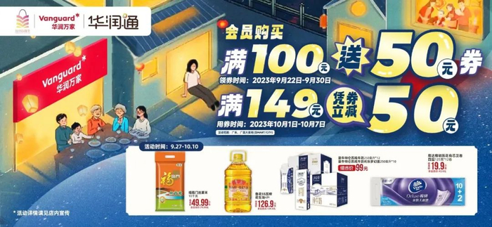 作为央企民生超市,华润万家积极为2023深圳购物季打CALL,即日起在广深地区推出重磅双节大促——