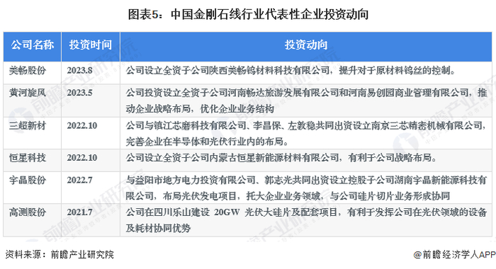 金刚石线行业代表性企业最新投资动向