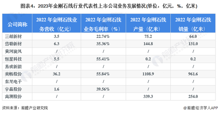 金刚石线行业代表性企业业务发展情况