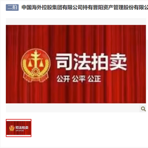日前,阿里司法拍卖平台显示,晋阳资产34%股权二拍成交。该笔股权原本由中国海外控股集团有限公司(下称“中海外集团”)持有,评估价为4.17亿元,起拍价为3.72亿元。