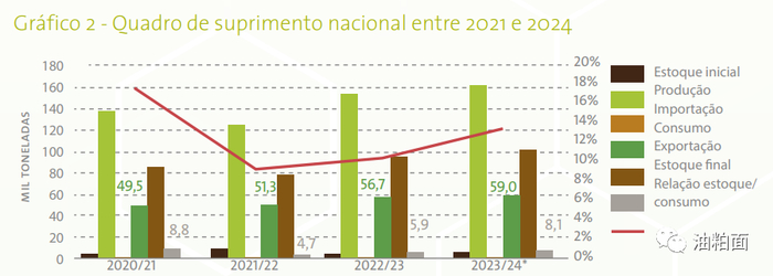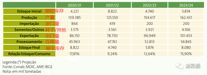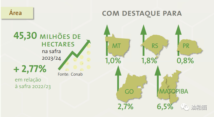 在巴西,即使大豆价格面临下行压力和盈利能力下降,大豆仍然是一种高盈利能力和流动性的作物。全球对生物燃料的生产需求预计将继续增长,导致出口和压榨增长。因此,预计巴西将在2023/24年增加大豆种植面积和产量。