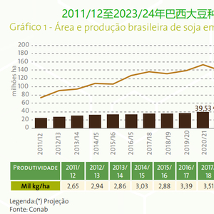大豆种植面积预计在巴拉那州增长0.8%,在马托格罗索州增长1.0%,在南里奥格兰德州增长1.8%,在戈亚斯州增长2.7%,在马托皮巴增长6.5%(包括马拉尼昂州、托坎汀斯州、皮奥伊州和巴伊亚州)。种植面积的增加是由于退化的牧场转为行作物种植,休耕地转为作物生产,以及有限的新土地开垦。巴西农民与大豆“生死攸关”,尽管与前几年相比,2023/24年度的利润将会减少,但大豆种植面积将连续第17年扩大。