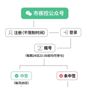 三、摇号查询:每月25日中午12:00后,通过预约接种小程序查询,市疾控中心微信公众号也会在当日同步公布中签名单。