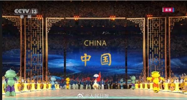 中国代表团亮相亚运会开幕式,为中国亚运健儿加油!