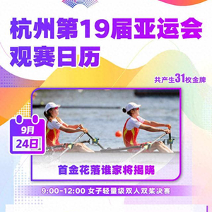 杭州亚运会首金将于9月24日上午9点在富阳水上运动中心进行的赛艇女子轻量级双人双桨项目中产生。中国组合邹佳琪/邱秀萍将冲击亚运首金。让我们一起期待!