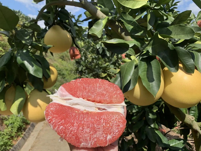 红心蜜柚对种植要求更为挑剔,只有梅州这么好的自然环境才能达到好的口感呈现。