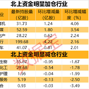 分行业来看,31个行业中有16个行业的北上资金持股量增长,计算机、传媒行业持股量环比增幅在3%以上。北上资金减持的行业普遍大幅下跌,社会服务、美容护理、基础化工行业减持幅度居前,行业指数均有明显跌幅。