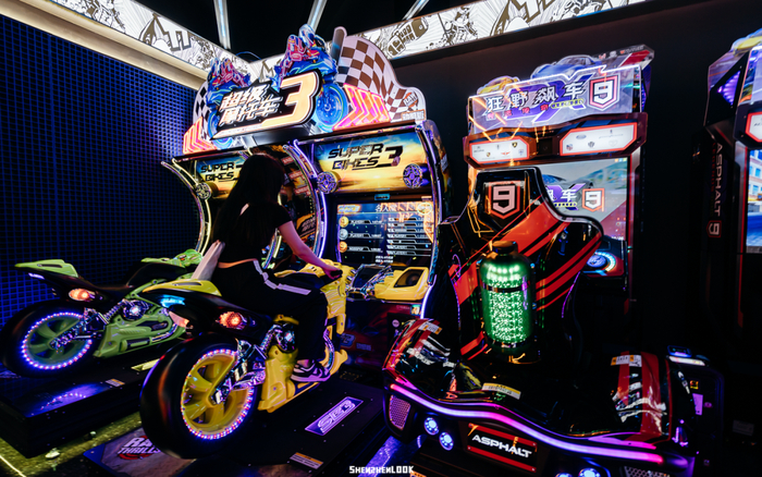 如果说运动馆玩不够,对面就是电玩城,最近还引入了不少新款的电玩机器,有一些运动街区里没有的电玩项目,比如跳舞机、推金币、娃娃机。不过这里不包含在一票制通玩里,需要另外购买游戏币。