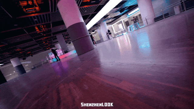 从高尔夫小镇出来,穿过游戏魔方街,就能到达上千平方米的旱冰场,这里是深圳目前最大的室内旱冰场。墙上的霓虹灯牌、迪斯科灯、场中央的DJ台,让人想到了小时候的旱冰场。在换鞋区挑双双排轮再场上滑行,更有千禧年代的复古味道。